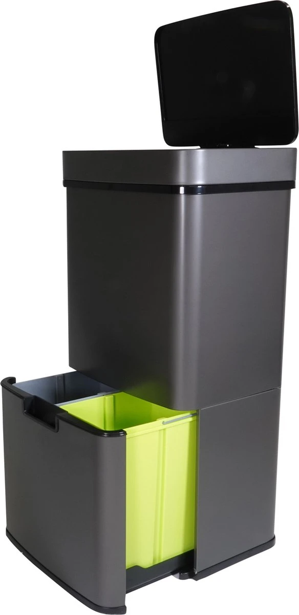 Onder in de afvalemmer vind je een tweede afval ruimte, deze is verwerkt in een handige lade welke wielen heeft om makkelijk open te gaan en heeft een inhoud van 25 liter. Deze ruimte is voorzien van 2 uitneembare emmers om bijvoorbeeld papier, plastic of compost te scheiden. Ook kan je deze ruimte benutten om bijvoorbeeld uw afvalzakken in te bewaren samen of schoonmaakmiddelen. Zo maak je van de afvalemmer een handige opberger. De afvalemmer is voorzien van een greep, zodat u deze eenvoudig kunt verplaatsen.