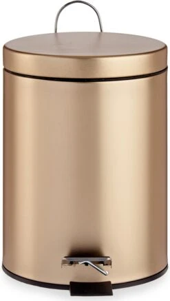 Berilo Pedaalemmer, 3 liter. Deze goudkleurige vuilnisbak is van metaal en heeft een inhoud van ca. 3 liter inhoud. Deze gouden pedaalemmer bevat een binnenemmertje en is bedienbaar dankzij het pedaal. Formaat: L22 x B18 x H28 cm.