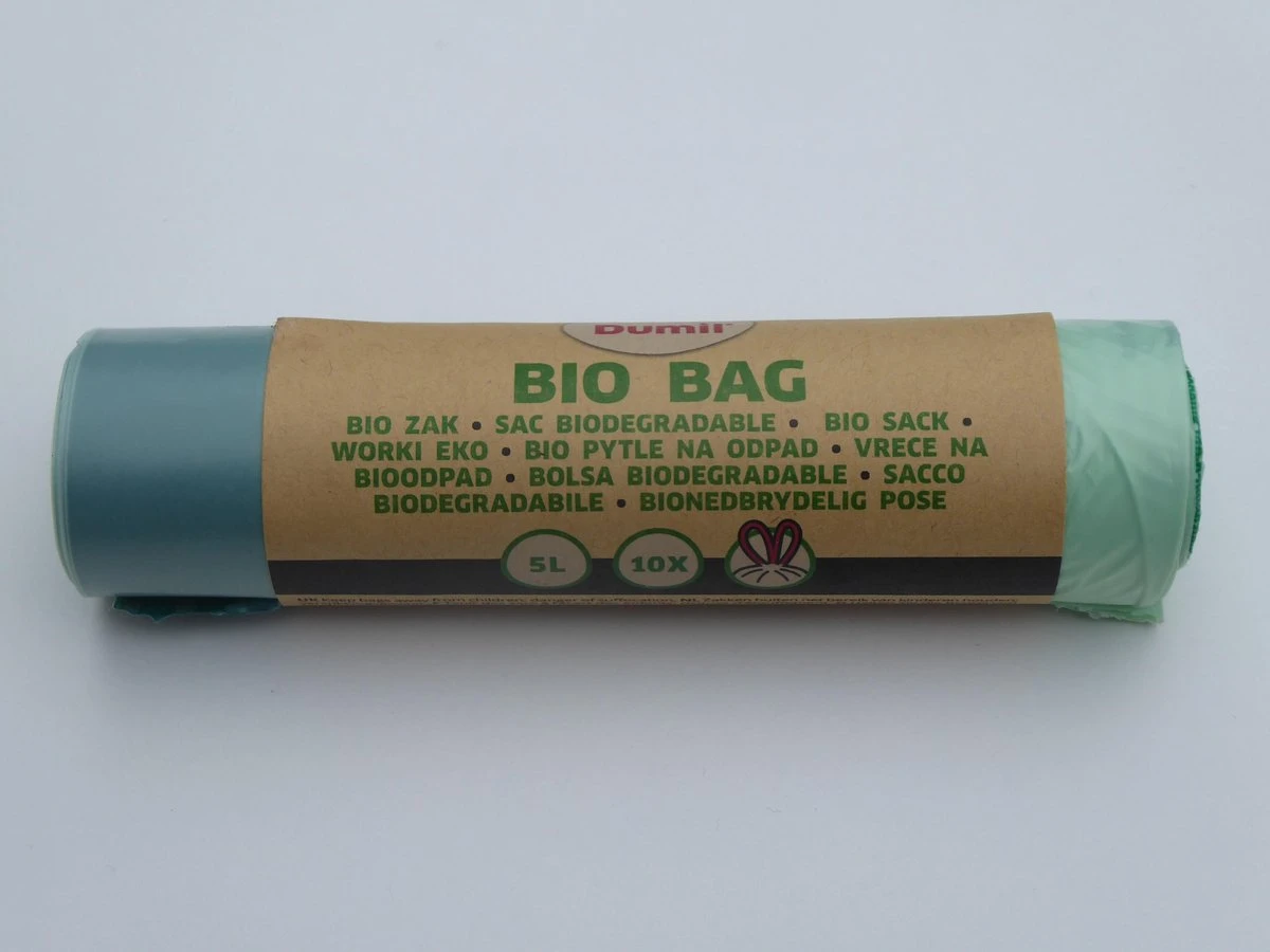 De vuilniszak is composteerbaar, Tüv-gekeurd en gecertificeerd volgens EN 13432.