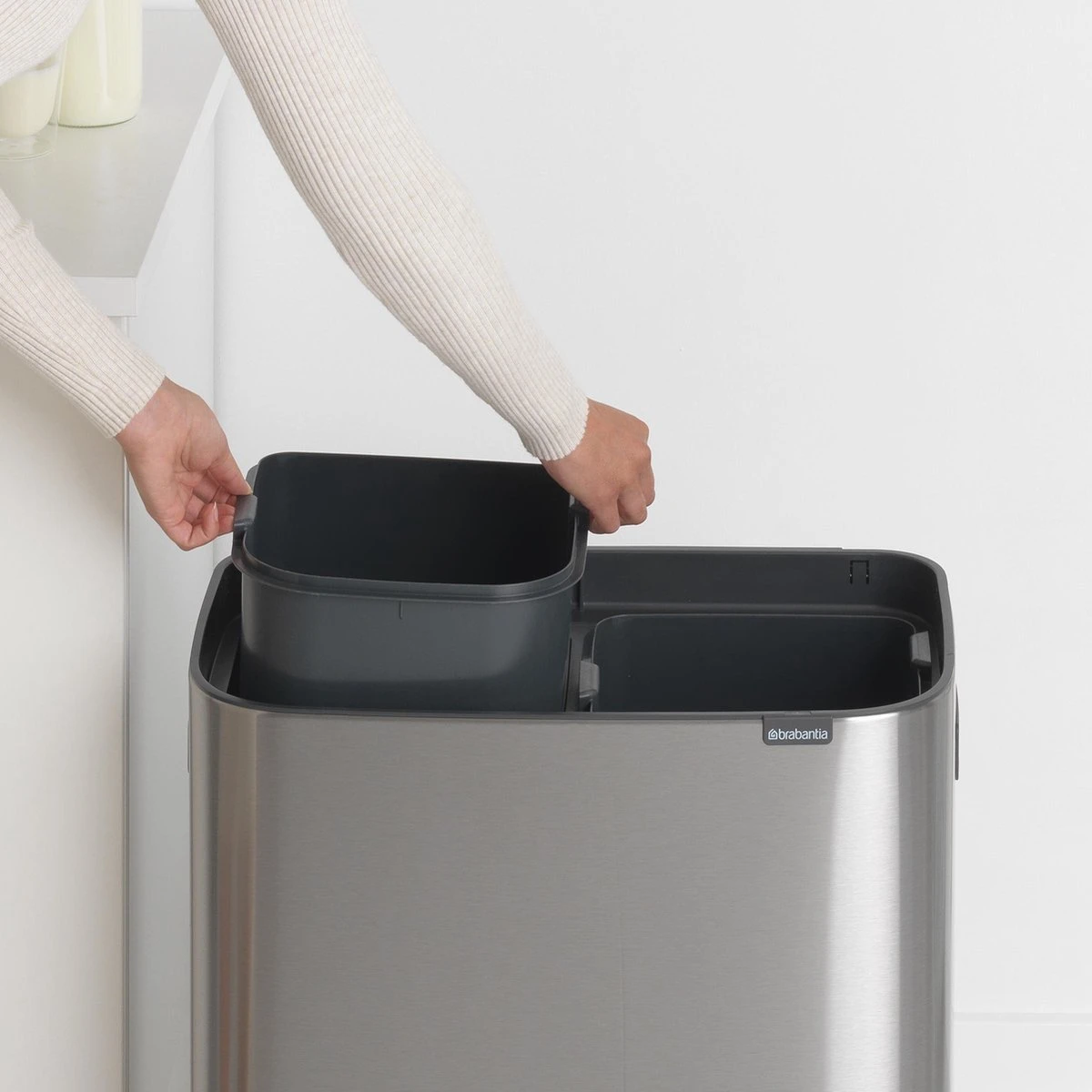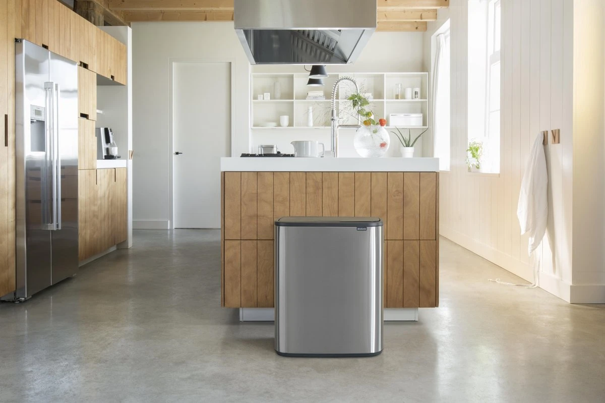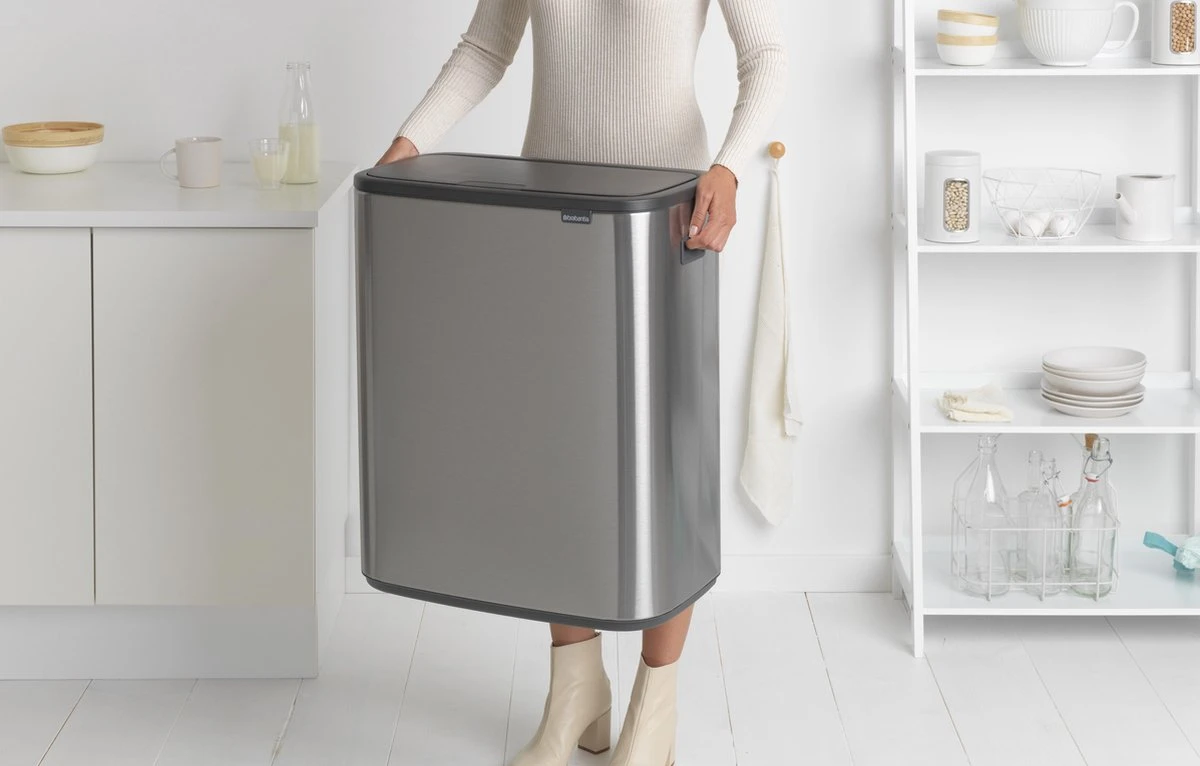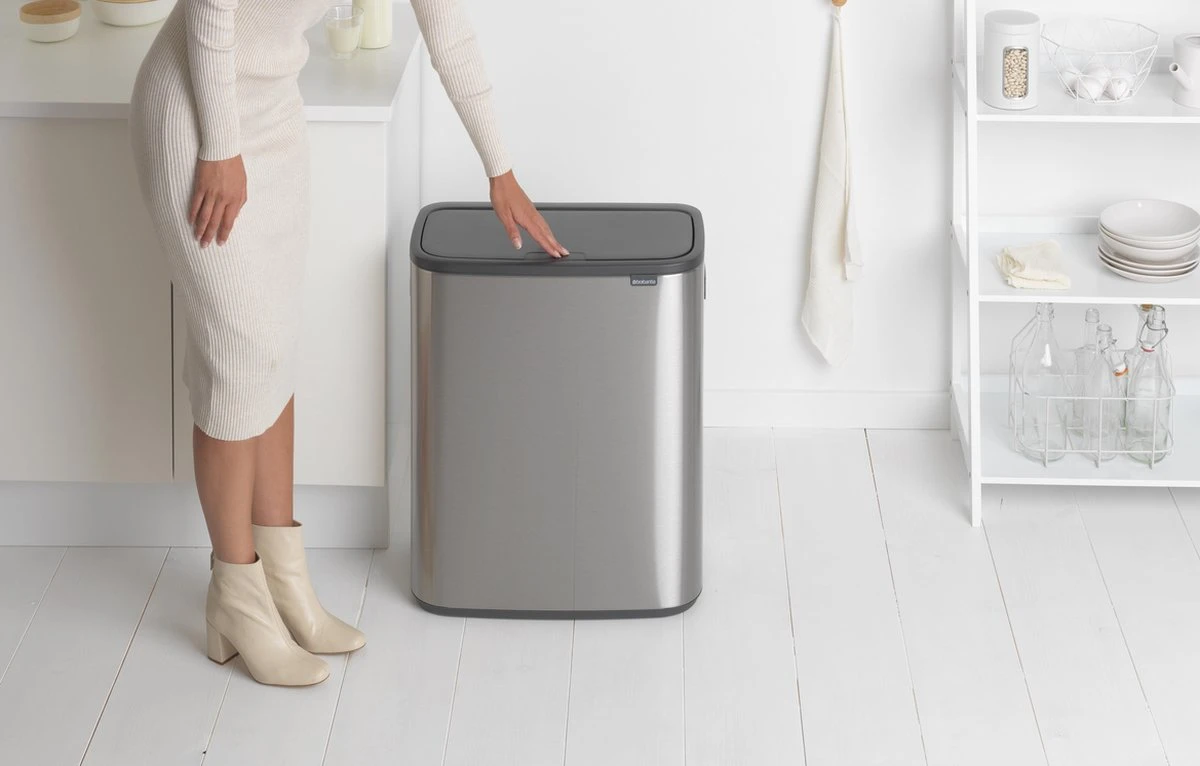Ontdek de modieuze Brabantia Bo Touch Bin. Een stijlvolle en handige prullenbak waarmee je met gemak je afval scheidt. Dankzij twee losse binnenemmers van 30 liter kan Bo 2 soorten afval aan. Bo past perfect tegen de muur en is erg stabiel. De deksel is makkelijk en licht te bedienen en sluit met de zachtste aanraking, dankzij het Soft Touch’ open- en sluitsysteem.