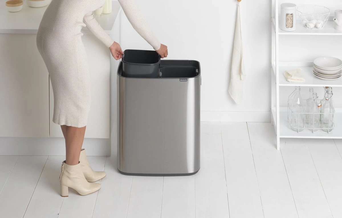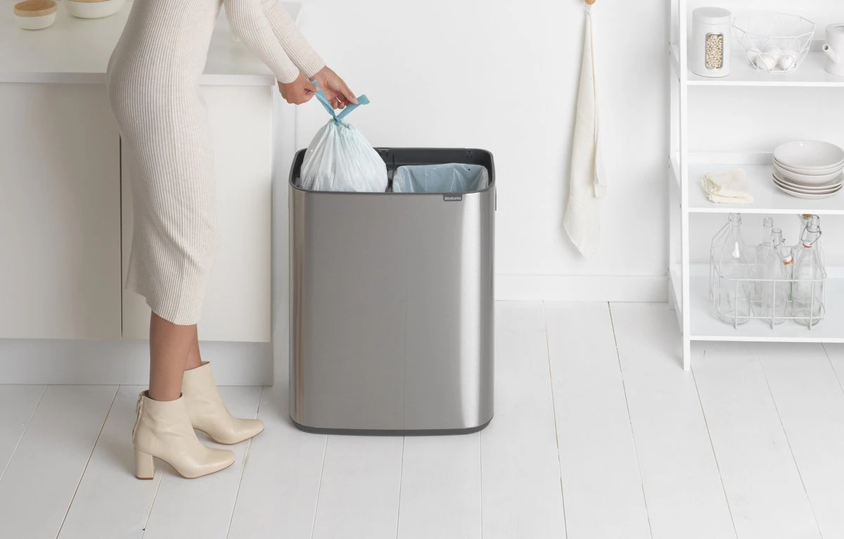 De Brabantia Bo Touch Bin bevat twee binnenemmers van maar liefst 30 liter. Hierdoor biedt deze prullenbak voldoende ruimte voor afval van een groot gezin. Deze Brabantia prullenbak wordt geleverd inclusief een proefverpakking van afvalzakken.