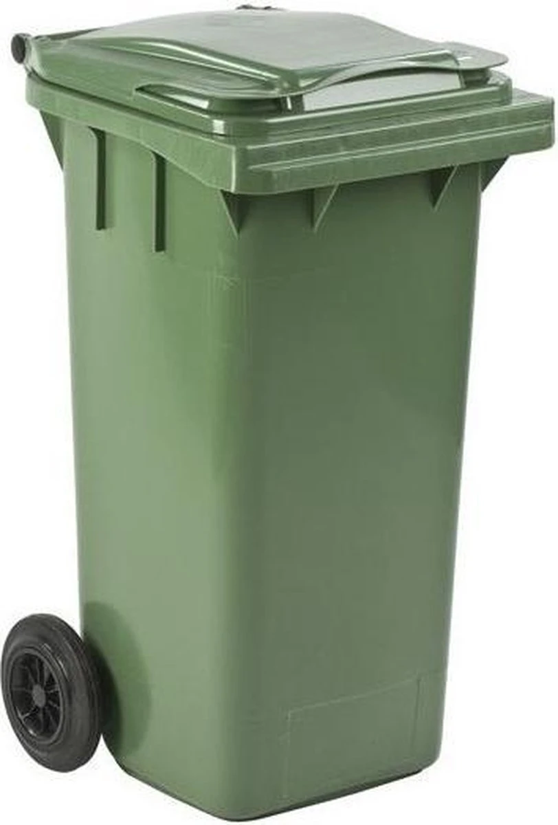 Minicontainer met scharnierend deksel van HDPE kunststof. Eigenschappen: Inhoud: 240 liter Laadvermogen: 110 kg. MateriaalL HDPE kunststof, UV bestendig Afmetingen lxbxh = 58 x 73 x 108 Wielen: 2 rubber wielen doorsnede 200 mm. Certificering: EN840 Kleur: Groen Gewicht: 13 kg.
