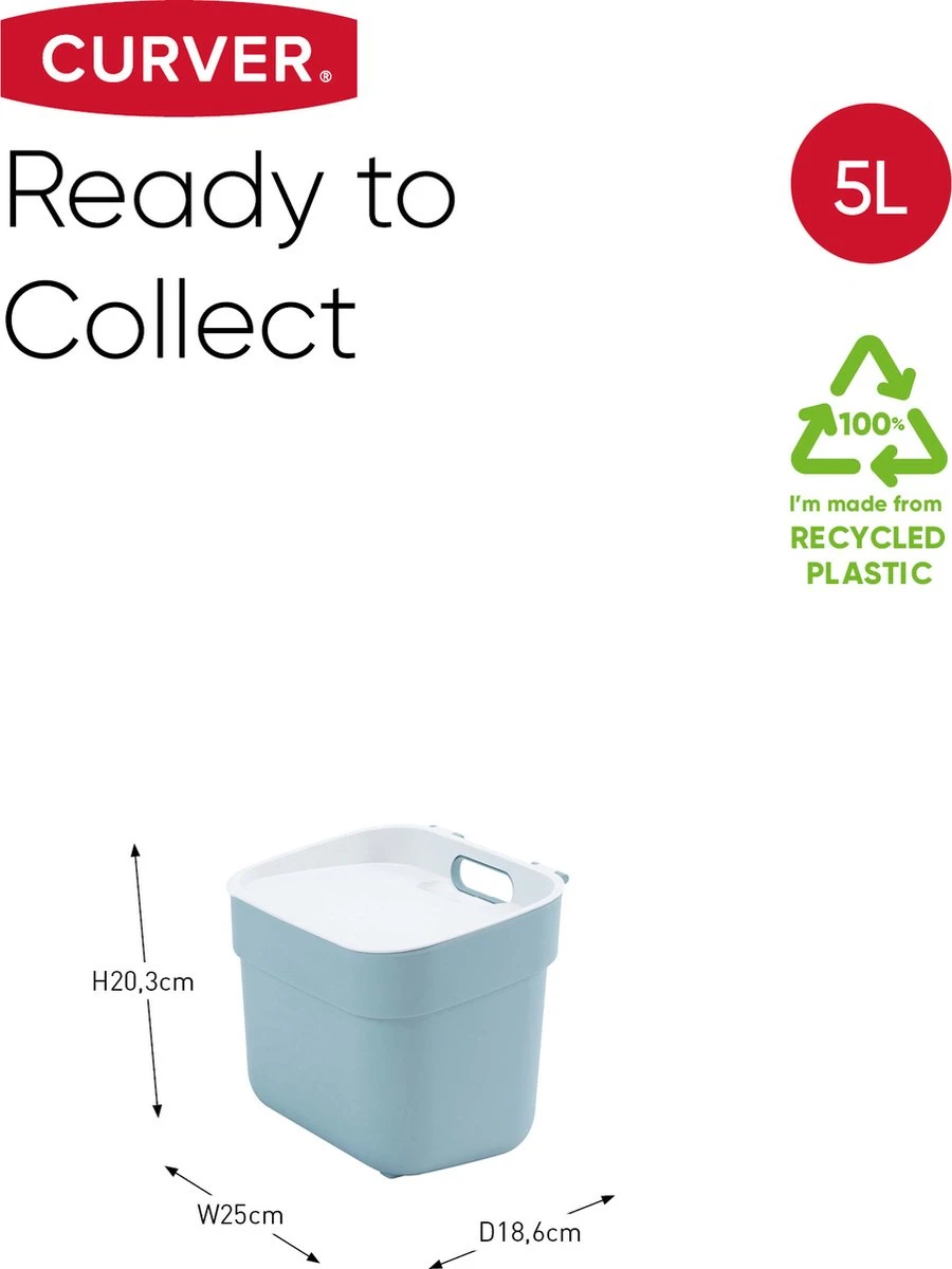 Ready to Collect is de ideale oplossing voor afvalscheiden in huis! Naast dat de lijn modulair & erg functioneel is komt de Ready to Collect lijn in een fris en modern kleurenpalette dat past in elke keuken of garage. Verkrijgbaar in verschillende maten: van een 5L GFT compostbak voor in de keuken, tot een 10L, 20L of zelfs 30L afvalbak. Daarnaast zijn de prullenbakken gemaakt van 100% gerecycled kunststof. Het verzamelen van bijvoorbeeld papier, plastic of lege flessen was nog nooit zo makkelijk en duurzaam.