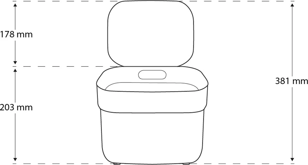 - Hoogte met open deksel (mm): 381
