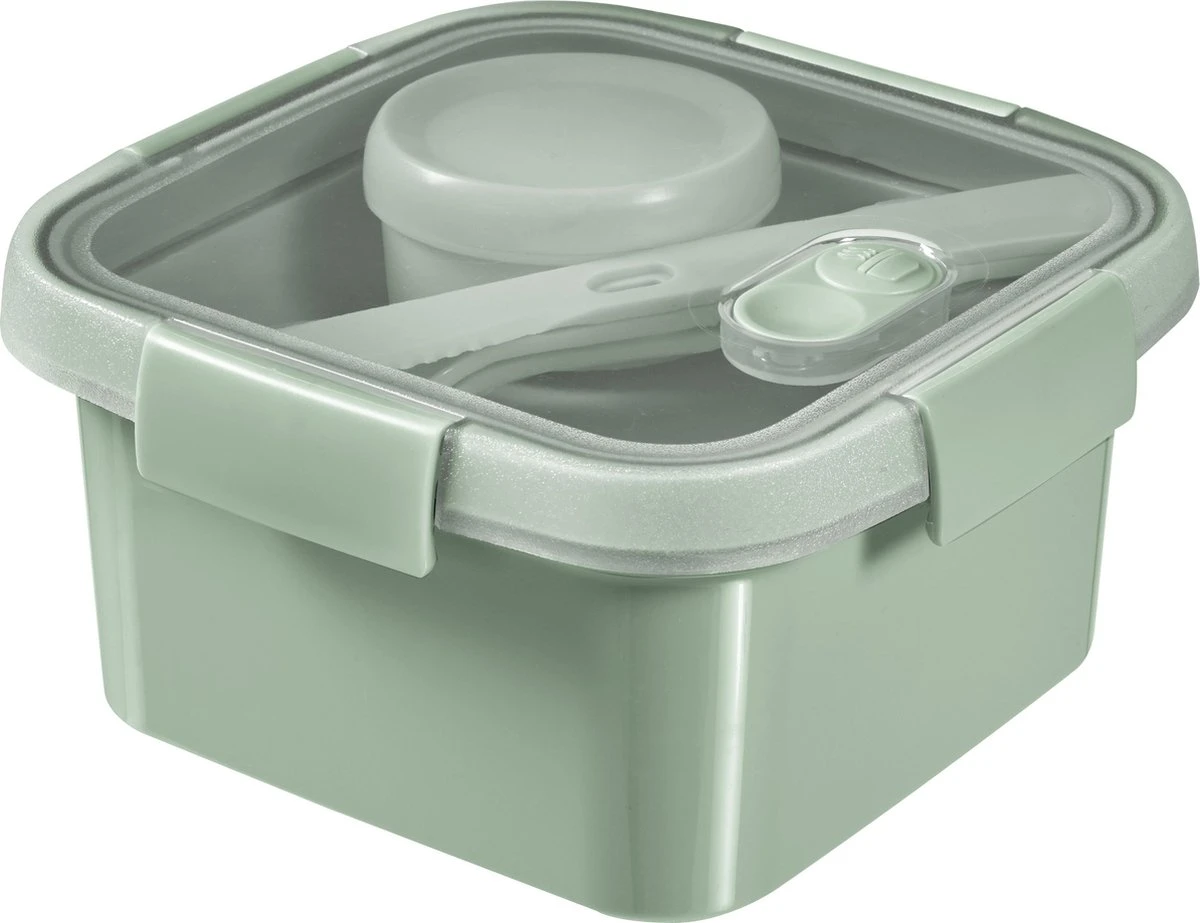 - Curver Smart to Go Eco Lunchset Vierkant 1,1L + Bestekset & Sauscup – Groen
