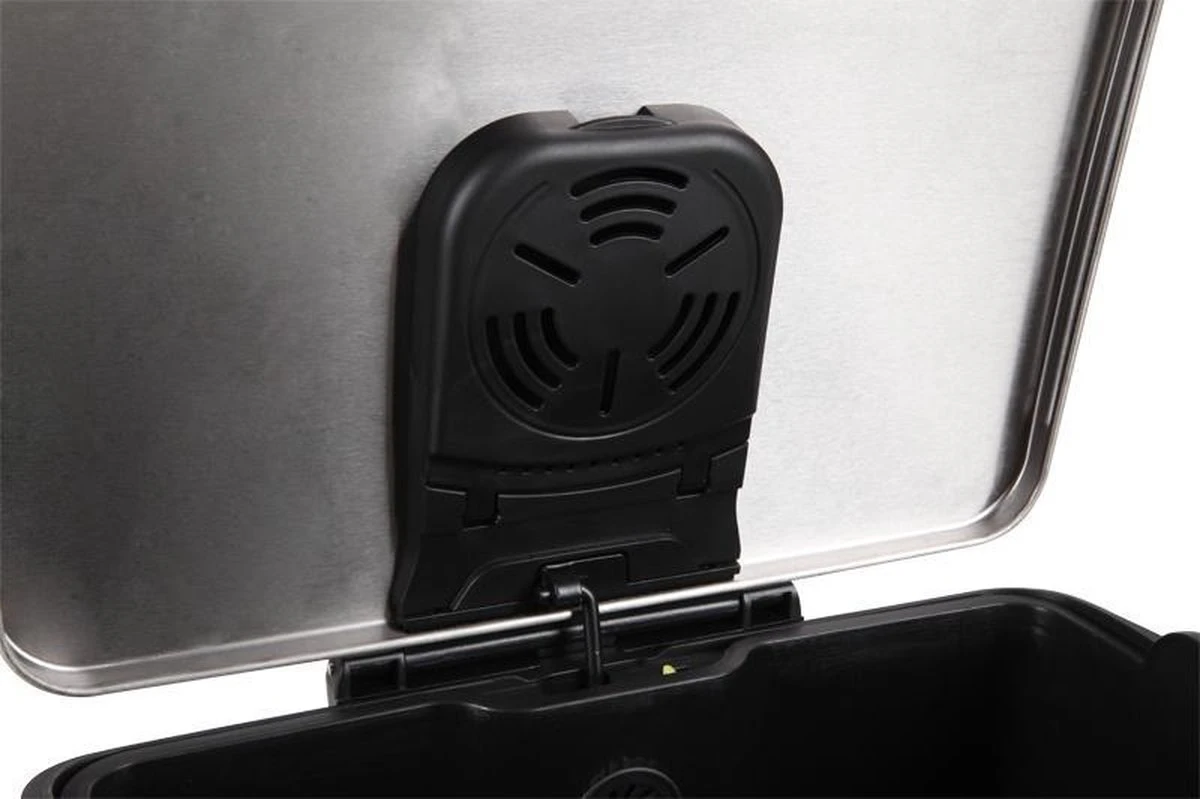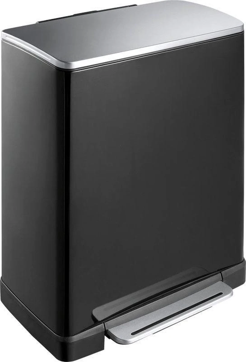 Deze stijlvolle glanzend zwarte EKO pedaalemmer met mat RVS deksel heeft een inhoud van 50 liter en is ideaal voor huishoudens van 2-3 personen. De prullenbak is voorzien van een extra breed pedaal en heeft een kunststof binnenemmer zodat je het vuil gemakkelijk weg kunt gooien. Daarnaast heeft de afvalbak een gedempt deksel waardoor deze geruisloos sluit, is de prullenbak fingerprintproof zodat er geen zichtbare vingerafdrukken op de prullenbak komen en heeft het een stay-open functie. Dit is ideal wanneer je je handen vol hebt en veel afval tegelijk weg wilt gooien. Aan de binnenzijde van het deksel is er ruimte voor een carbonfilter om nare geurtjes te voorkomen. Let op: deze wordt er niet standaard bijgeleverd.