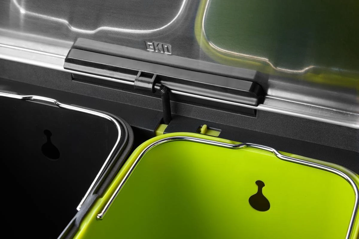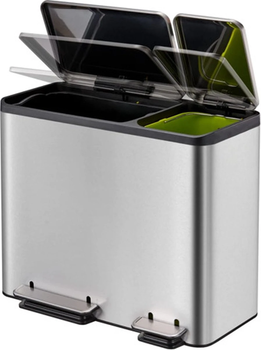 Hij is voorzien van een zachtsluitende deksel en twee kunststof binnenemmers met een inhoud van 30 en 15 L voor het scheiden van afval. Daarnaast kan het deksel in open stand worden vergrendeld, waardoor de reiniging van de afvalbak en het verwisselen van de afvalzak zeer eenvoudig zijn.