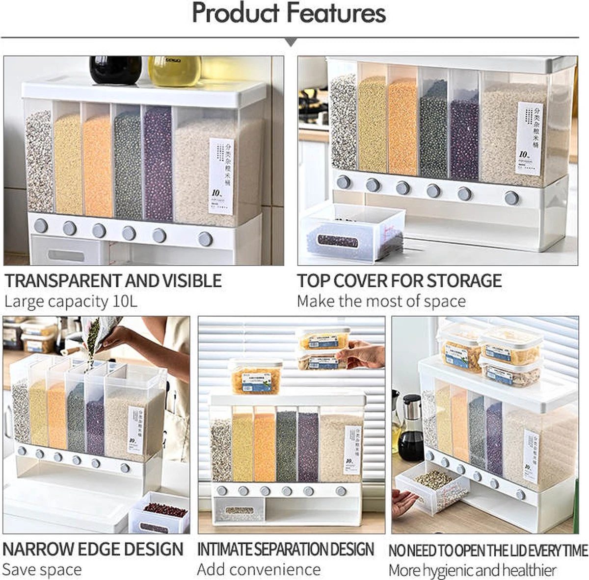 De Food Dispenser wordt geleverd met 6 verschillende containers. Dankzij de vocht bestendige materiaal worden jouw ingrediënten droog en luchtdicht bewaard wat jouw ingrediënten langer houdbaar maakt!