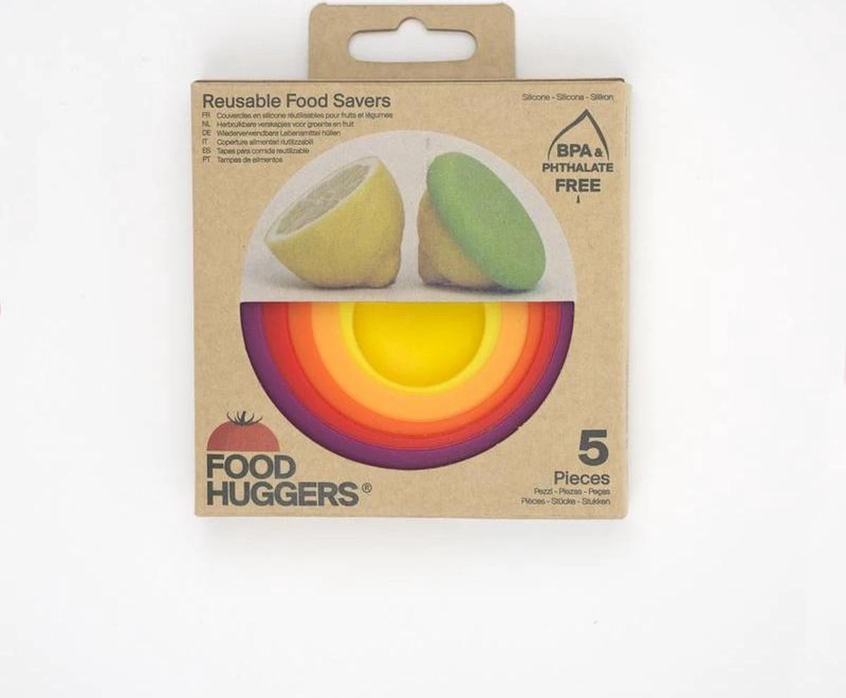 Foodhuggers zijn dé oplossing voor groenten overbijven. In plaats van bakjes in de koelkast of een stuk slecht plakkend folie, kan je de foodhuggers op de open kant van het stuk groente of fruit plaatsen, zodat ze hun kwaliteit behouden. Ze zijn gemaakt van flexibel rubber dat goed blijft zitten, en voor verschillende formaten te gebruiken zijn. Er zijn daarnaast ook huggers van verschillende grootte, zodat u elk stuk fruit of groente kan beschermen.