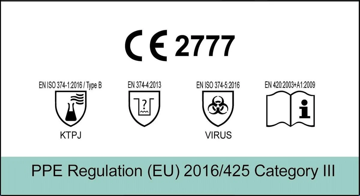 - Ondoordringbaar door virussen en bacterieën (EN374-5)