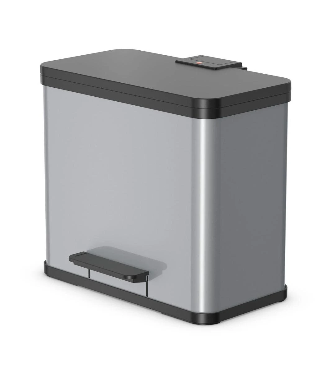 Afvalscheiding was nog nooit zo makkelijk als met deze afvalscheidingsprullenbak uit de Öko serie van Hailo. Vanwege zijn 3 componenten scheidt je standaard afval gemakkelijk van bijvoorbeeld GFT afval en plastic. De 3 bakken zijn uitneembaar en dus zonder moeite te reinigen. Het openen van de deksel kan hygiënisch met het ergnomisch brede voetpedaal en als de prullenbak weer sluit gebeurt dit zonder geluid dankzij de soft-close techniek.