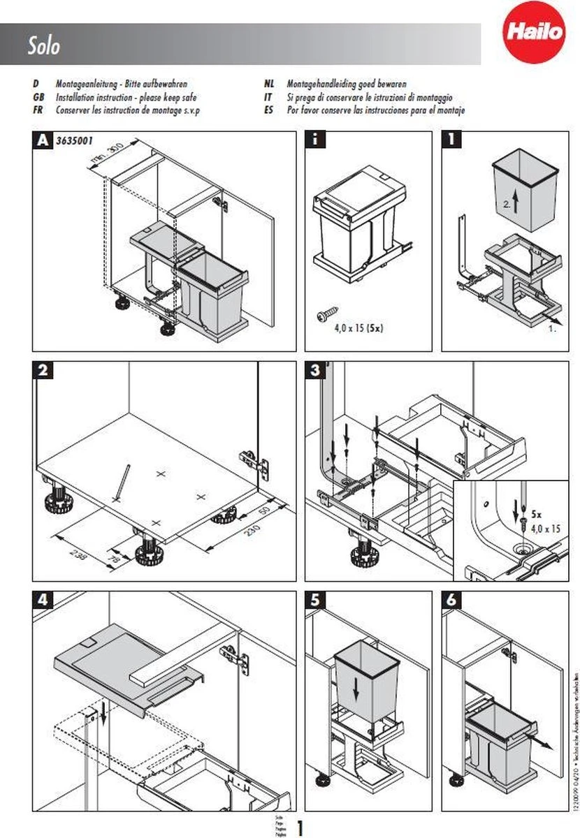 De Hailo Solo heeft een inhoud van 20 liter en de bak is volledig (manueel) uittrekbaar zodat de gehele bak open is. Deze inbouw afvalemmer past in een keukenkastje vanaf 40 cm breed en monteer je op de bodem van je keukenkastje, hierdoor geschikt voor zowel links- als rechtsdraaiende deuren.