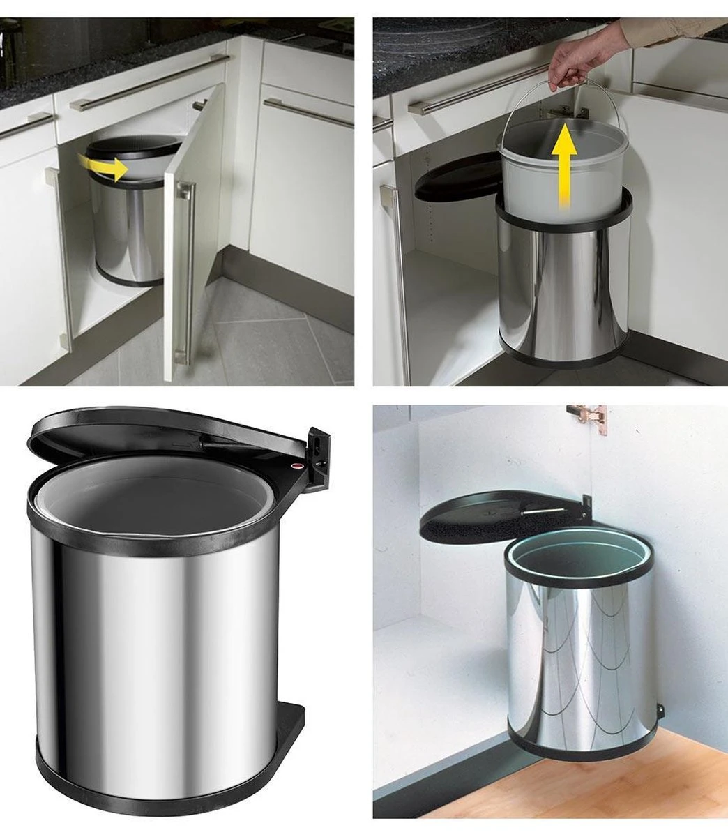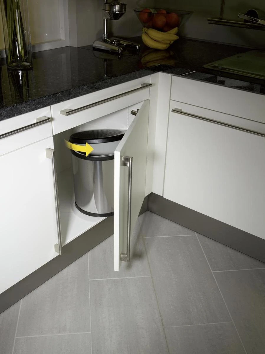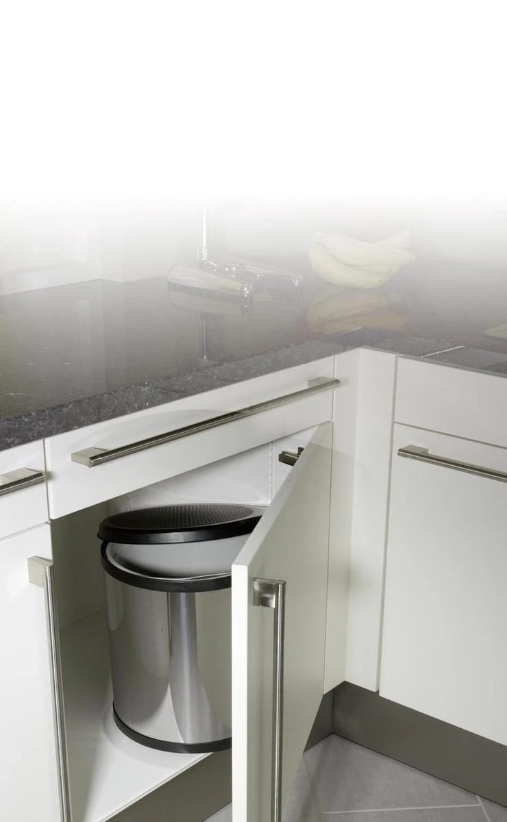 Deze afvalbak is ideaal voor elke inbouw keuken. Het deksel-liftsysteem tilt het deksel naar één kant op zodra je de kastdeur opent. Dit zorgt voor eenvoudig vullen en verwijderen van de binnenbak. De afvalbak is eenvoudig te monteren. Je kunt zelf kiezen of het aan de rechter- of linkerdeur gaat. De Compact-Box M kan maximaal 15 liter bevatten en kan worden gebruikt met carrouselunits van meer dan 40 cm breed.