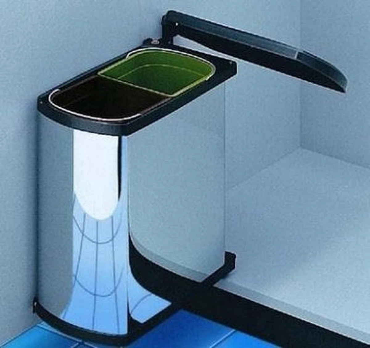 Deze prullenbak van Hailo is in te bouwen in je kast voor als je niet wil dat je prullenbak constant in het zicht staat. Omdat de afvalbak 2 compartimenten heeft van 8 liter is het mogelijk om bijvoorbeeld GFT-afval en normaal afval gescheiden te houden. Omdat de inbouwprullenbak in totaal een inhoud heeft van 16 liter is hij ideaal voor 1-2 personen. De RVS prullenbak is zowel links als rechts in een kast te plaatsen.