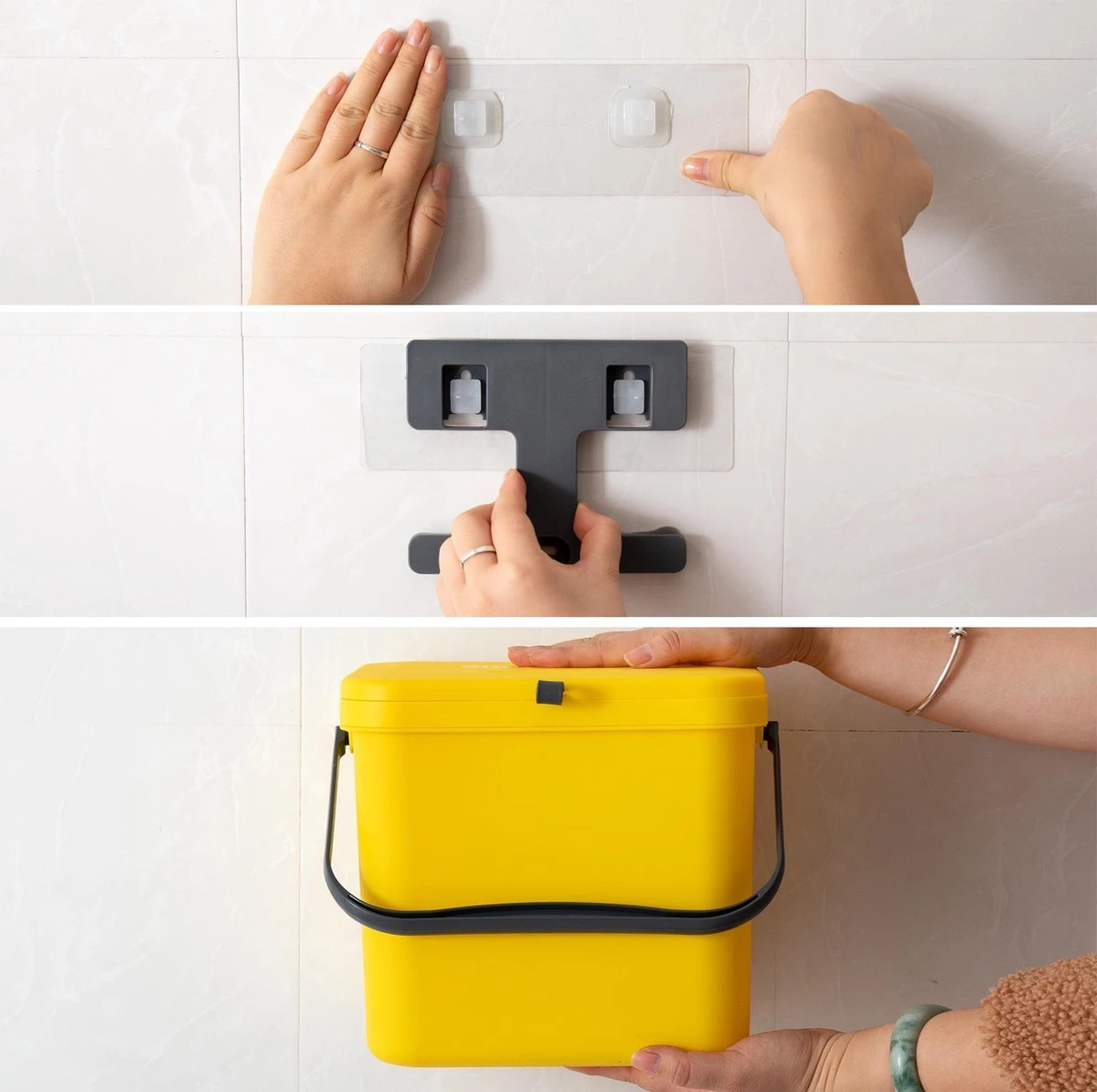 - GEMAKKELIJK TE BEVESTIGEN: De prullenbak is gemakkelijk aan een muur, keuken- of badkamerkastje vast te zetten.
