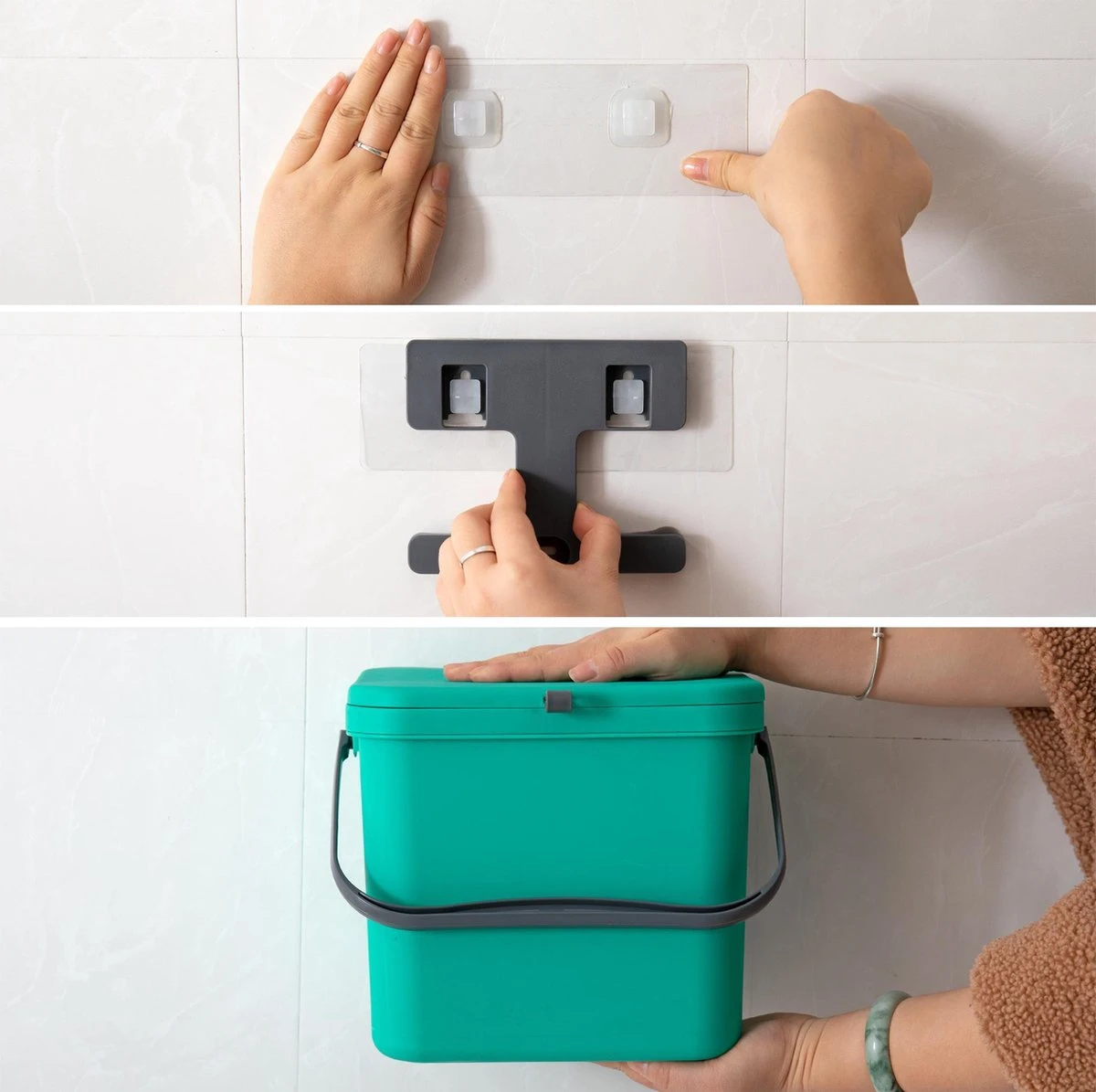 - GEMAKKELIJK TE BEVESTIGEN: De prullenbak is gemakkelijk aan een muur, keuken- of badkamerkastje vast te zetten.