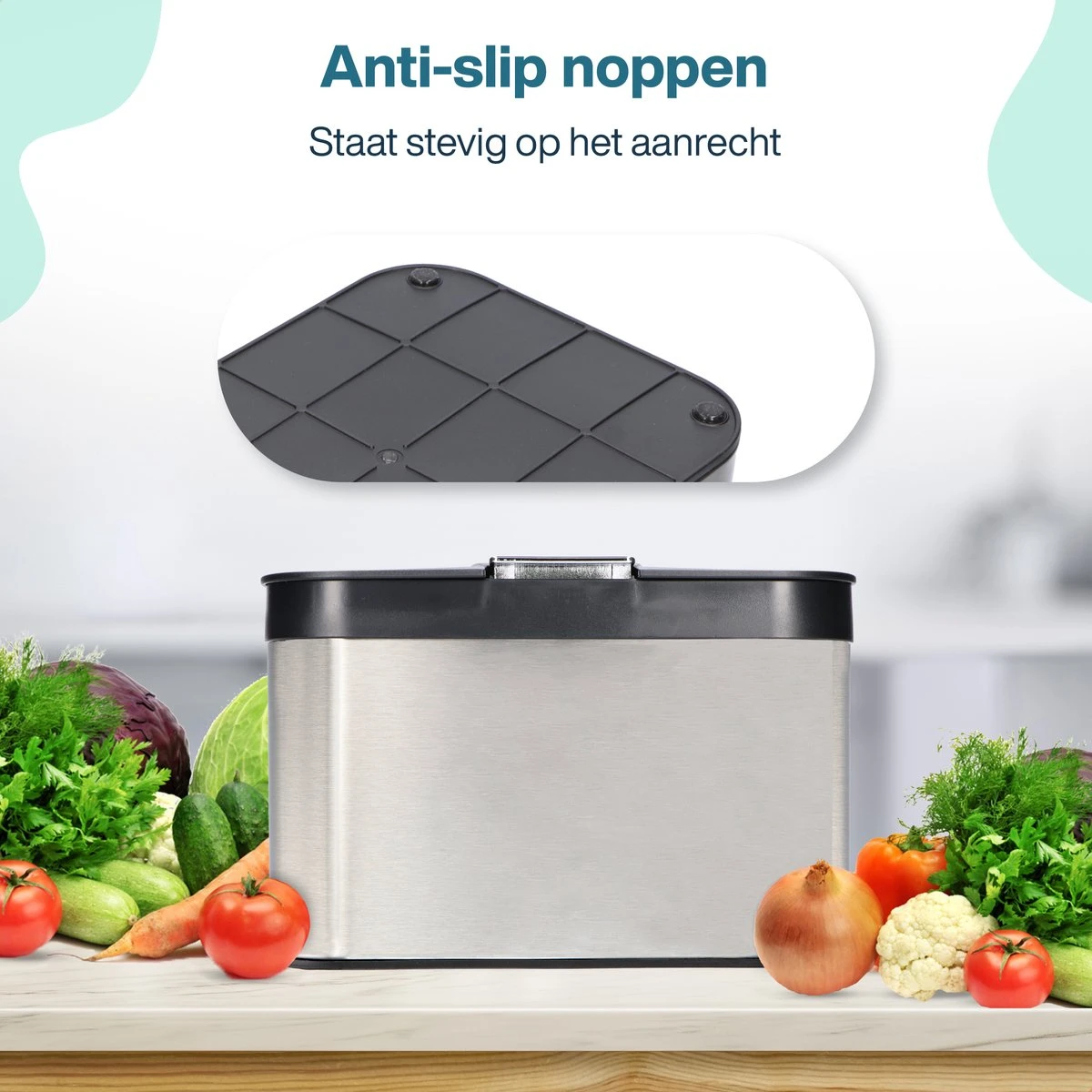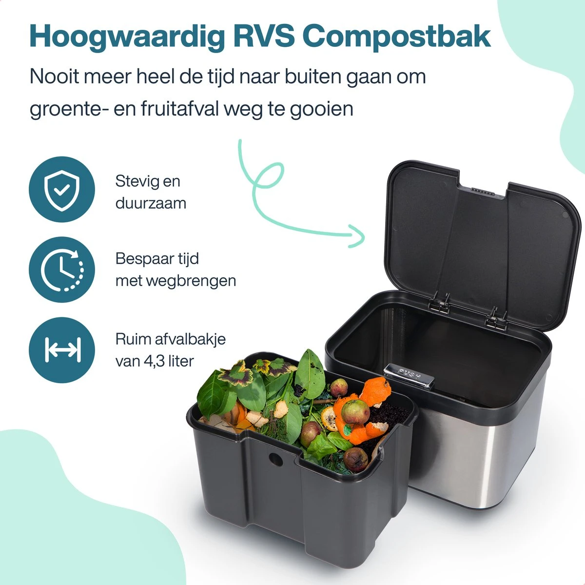 Hoogwaardig RVS Compostbak En Binnenemmer 4.3L – Groenafval – Compost – Afvalbakje Aanrecht – Compostemmer Keuken – Afvalemmer