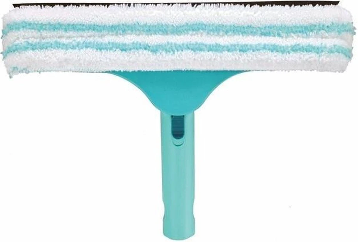 De raamwisser 3-in-1 van Leifheit is het unieke allround talent in zijn soort en zorgt voor een duidelijke werkverlichting. Met dit unieke apparaat kunnen drie werkprocessen in één worden uitgevoerd: Ramen wassen, hoeken en ramen reinigen, schoontrekken. De unieke doek rondom uit microvezels maken dit mogelijk, omdat deze de zijdelingse vensters gelijk meeneemt. Dat spaart enorm veel tijd en moeite. Na de reiniging zorgt de geïntegreerde treklip voor een streeploze glans. Voor beweeglijkheid en maximaal bedieningscomfort beschikt de handruitenwisser over een draaischarnier. Zo is deze uitstekend geschikt voor het effectief reinigen en schoontrekken met slingerbeweging – de techniek van de professionals. De mopbreedte bedraagt 32 cm. De greep maakt het gebruik van een Leifheit Click-systeem-steel met telescoopfunctie mogelijk.