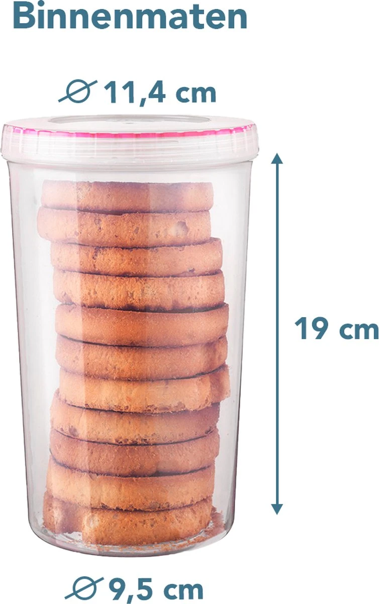De holle siliconenafdichting in de draaidop zorgt ervoor dat de beschuitbus 100% lucht- en waterdicht is. (Vloeibare) producten kunnen lekvrij bewaard en vervoerd worden én blijven dagen langer vers.