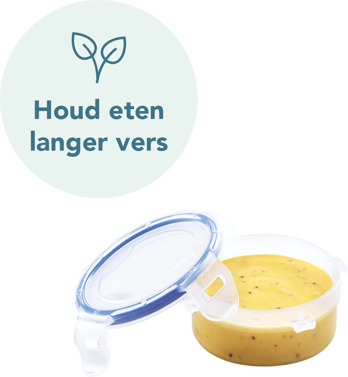 Het vierzijdige sluitingsmechanisme in combinatie met de holle siliconenafdichting zorgt ervoor dat de vershoudbakjes 100% lucht- en waterdicht zijn. (Vloeibare) producten kunnen lekvrij bewaard en vervoerd worden én blijven dagen langer vers.