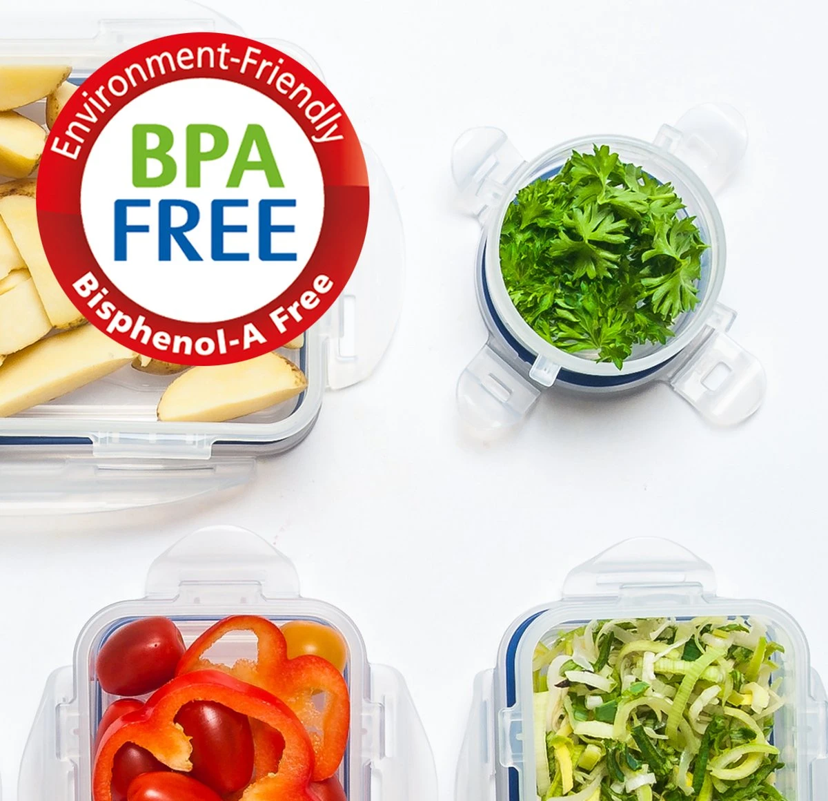 De vershoudbakjes zijn gemaakt van Polypropyleen, een veilig materiaal voor de gezondheid en vrij van BPA.