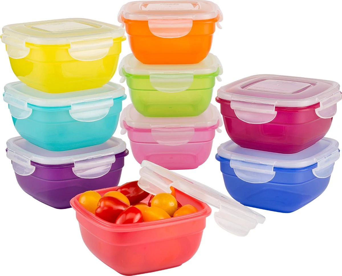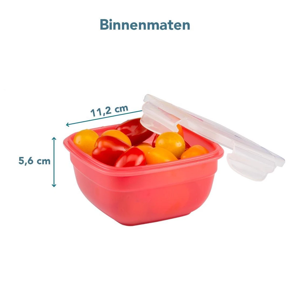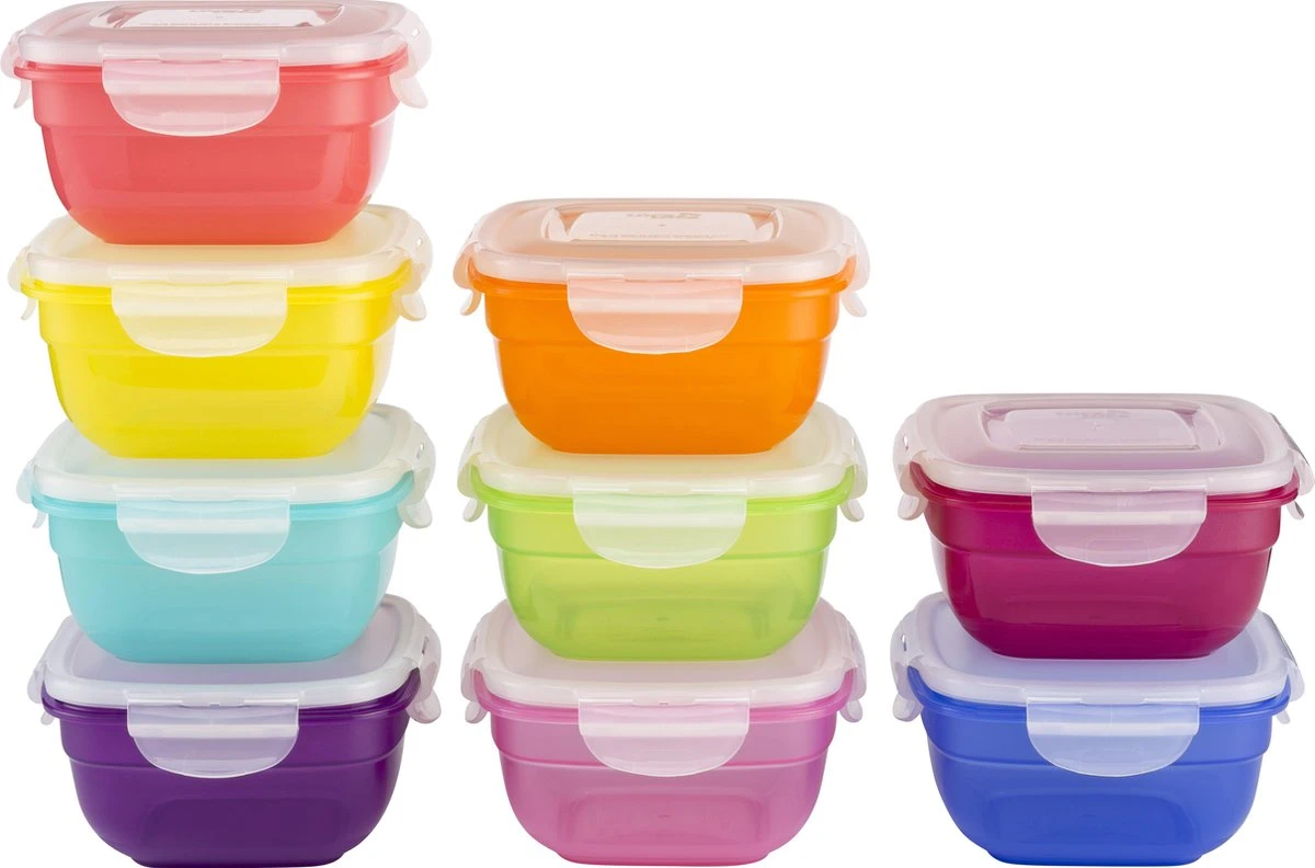 Houd producten langer vers met deze vrolijke set van 9 LOCK&LOCK vershoudbakjes van 520 ml. Zoek je een oplossing voor het bewaren van leftovers? Bewaar het in deze bewaardozen en je kunt het vervolgens zó opwarmen in de magnetron. Of gebruik ze als lunchboxen en snackdoosjes waardoor je je lunch en snacks zonder problemen overal mee naar toe kan nemen. Door de schuin toelopende zijkanten kun je deze bakjes makkelijk in elkaar stapelen, dat bespaart ruimte in je keukenkastje!