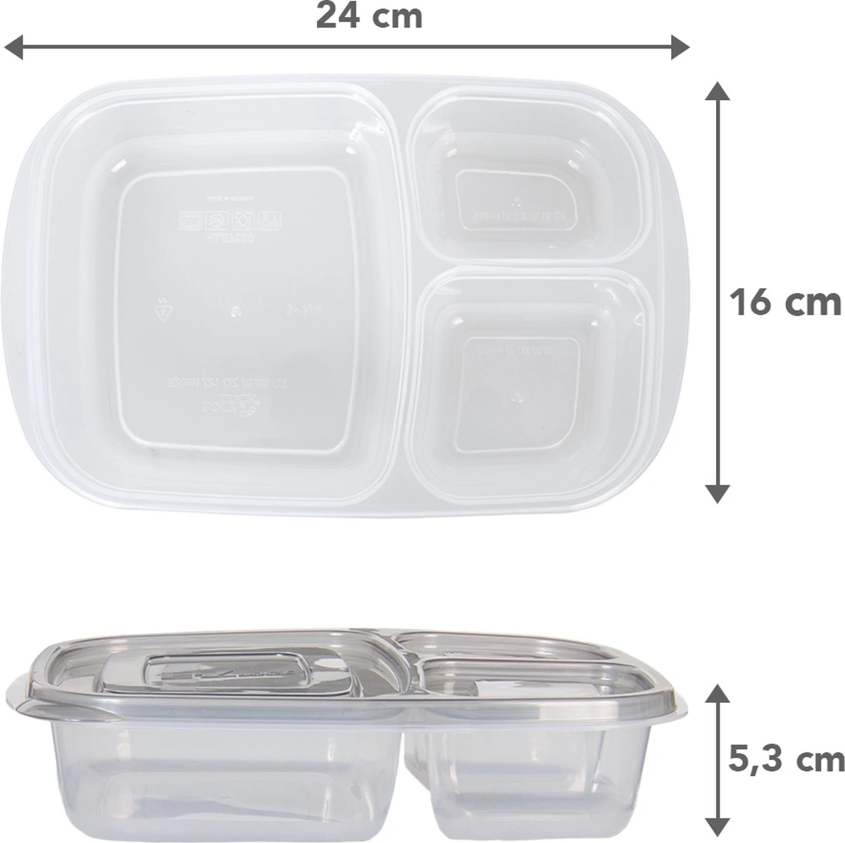 Buitenmaat inclusief deksel: 24 x 16 x 5,3 cm