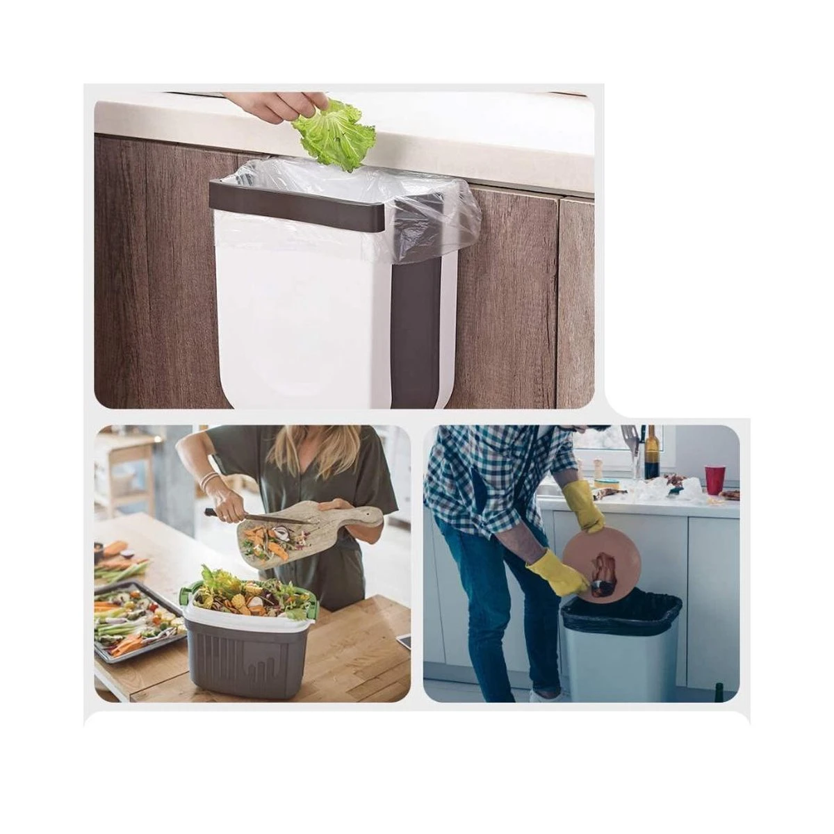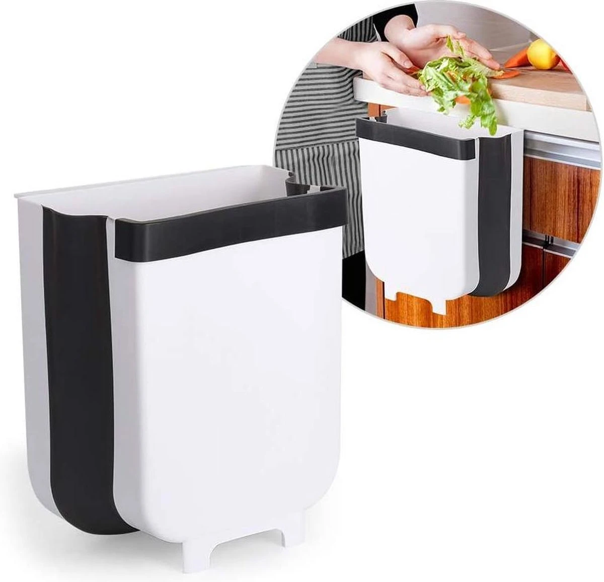 U heeft vast wel eens een keer gehad dat u het keukenafval per ongeluk naast de prullenbak gooit? Of het onhandige loopje met een snijplak vol schillen en andere etensresten naar de prullenbak. Met de Handy Bin hoeft u geen last meer te hebben van deze keuken problemen. Met het kleine formaat en de opvouw functie hangt de Handy Bin nooit in de weg. Het ophangsysteem zorgt ervoor dat de Handy Bin aan elk keukenkastje of aan iedere keukenla kan worden opgehangen.