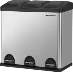 De pedaalemmer is uitgerust met pedalen voor een gemakkelijke en hygiënische opening en heeft 3 binnenbakken zodat u uw afval gescheiden door materiaal kunt weggooien