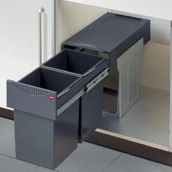 Hailo Tandem – Inbouw Prullenbak – 30 Liter Inhoud – Met 2 Compartimenten – Grijs