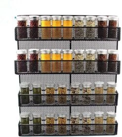 Hang hem aan de muur of verwerk ‘m in een keukenkastje. Zo wordt ie een dressing voor iedere keukengoeroe. Het ziet er leuk uit en geeft ruimte voor de smalle potjes en ook die een bolle onderkant hebben.