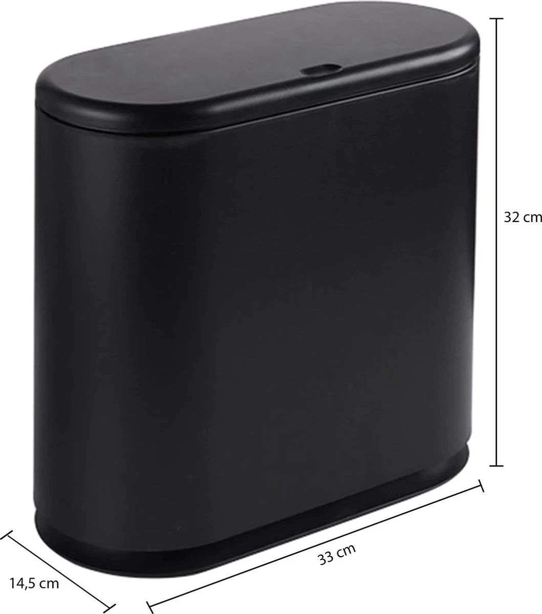 Deze vuilnisbak is vrij smal en neemt daardoor weinig ruimte in. Hij is geschikt voor kleine kamers zoals een kleine badkamer of toilet. Ook als je een kleinere keuken hebt, kun je deze afvalemmer in een kleine hoek of zelfs in je kast kwijt. Of denk bijvoorbeeld aan je werkkamer of kantoorruimte. Ook hier neemt hij weinig ruimte in en kan toch heel veel bevatten.