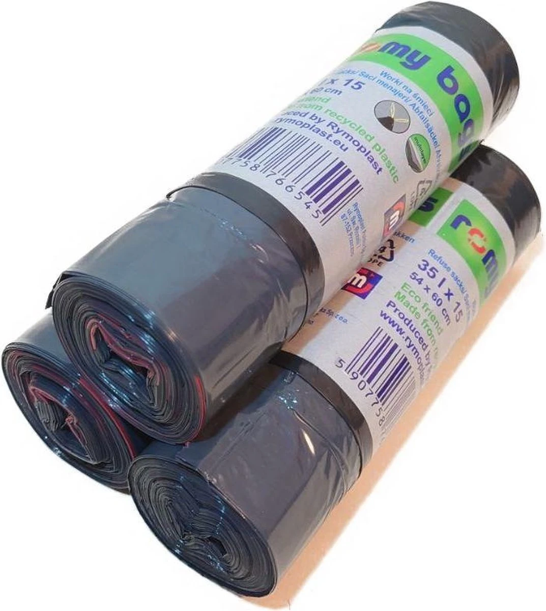 De Afvalzakken zijn gemaakt van een zwarte kleur aan de buitenkant en grijze laag aan de binnenkant voor extra stevigheid.