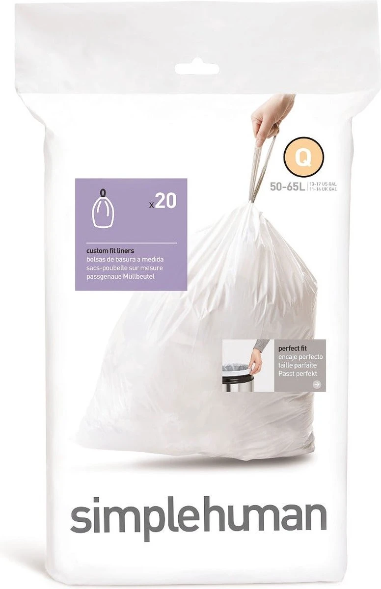 Afvalzakken Code Q 50 – 65 liter van Simplehuman. Inhoud: 20 stuks.