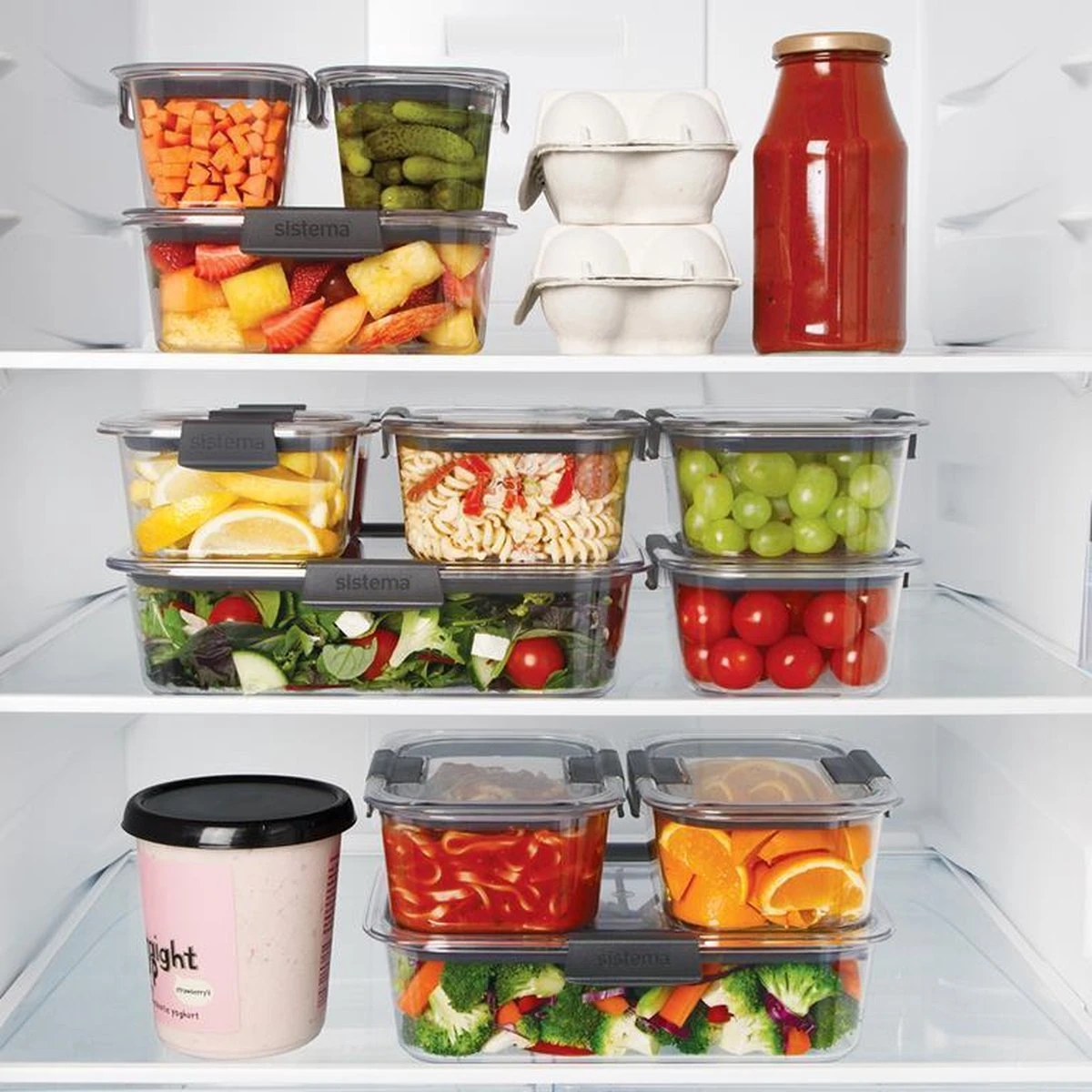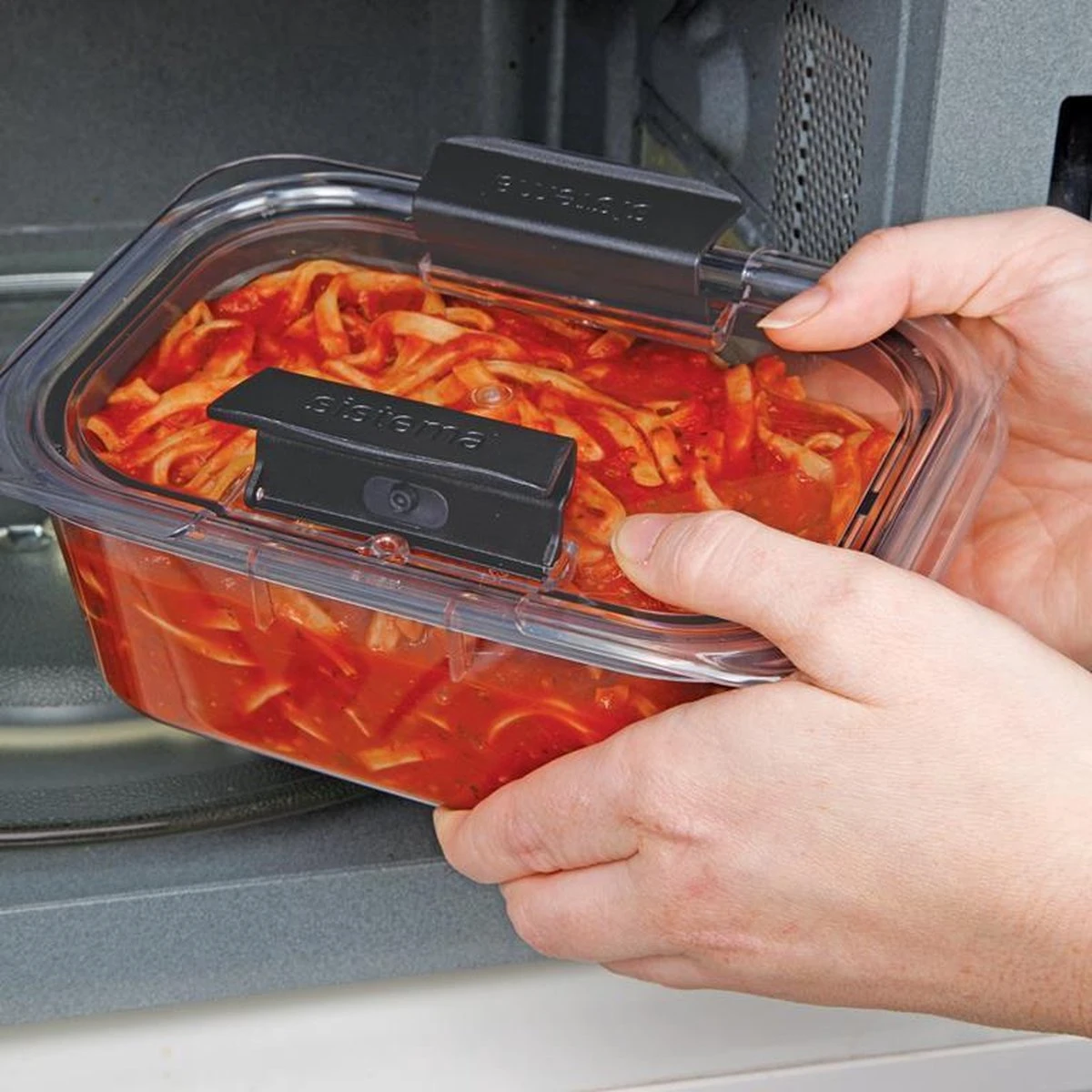 De bewaardozen van Sistema Brilliance zijn veelzijdig, stapelbaar en 100% lekvrij, zodat je voedsel zoals sauzen, soepen en stoofpotten eenvoudig kunt vervoeren. De glasheldere bewaardozen en deksels zijn handig om snel de inhoud te zien. Deze voorraaddozen hebben ook ingebouwde ventilatieopeningen om je voedsel veilig en eenvoudig op te warmen in de magnetron, en ze zijn ook vaatwasser- en diepvriezerbestendig.