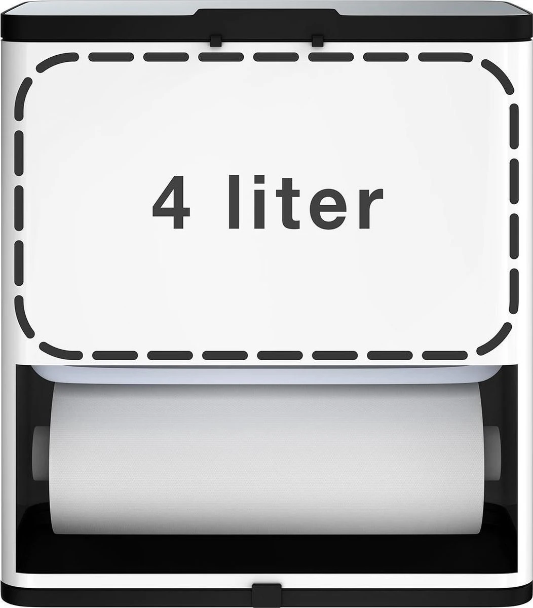 - RUIMTEBESPAREND – Deze prullenbak heeft een inhoud van 4 liter en is ideaal om te plaatsen in kleinere ruimtes. In de badkamer, op kantoor of zelfs aan de binnenkant van de aanrechtkastje.