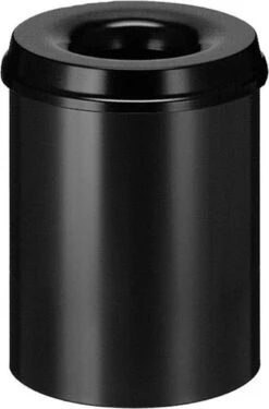 Ronde metalen papierbak u met deksel.