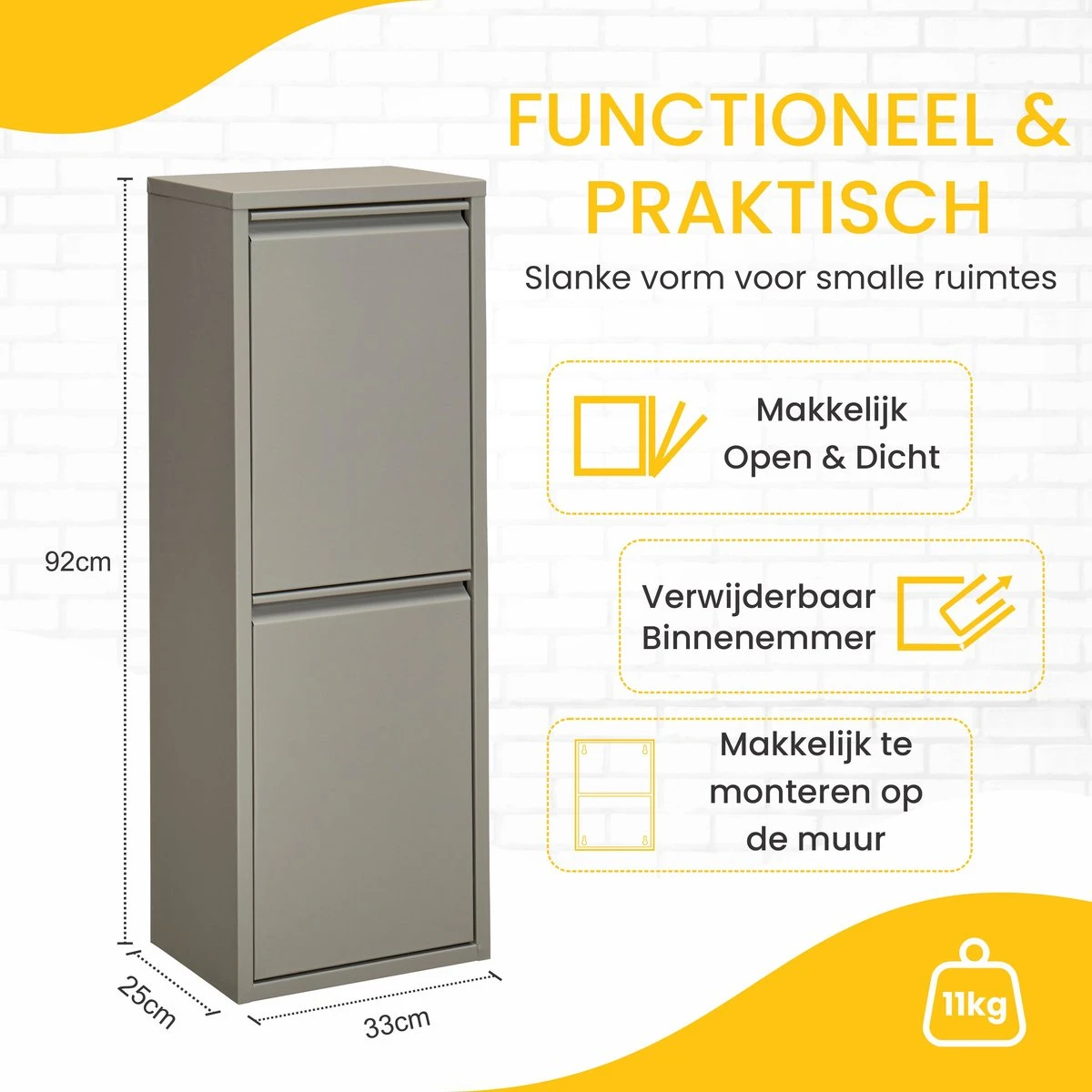 - Veelzijdig: de veelzijdige multifunctionele kast Refina van metaal is een ideale afvalscheider. Maar niet alleen als afvalscheidingssysteem is hij de perfecte aanvulling voor elk huishouden, maar ook als opbergsysteem slaat hij een goed figuur. Dankzij de hoogwaardige afwerking en look is hij geschikt voor bijna alle ruimtes.