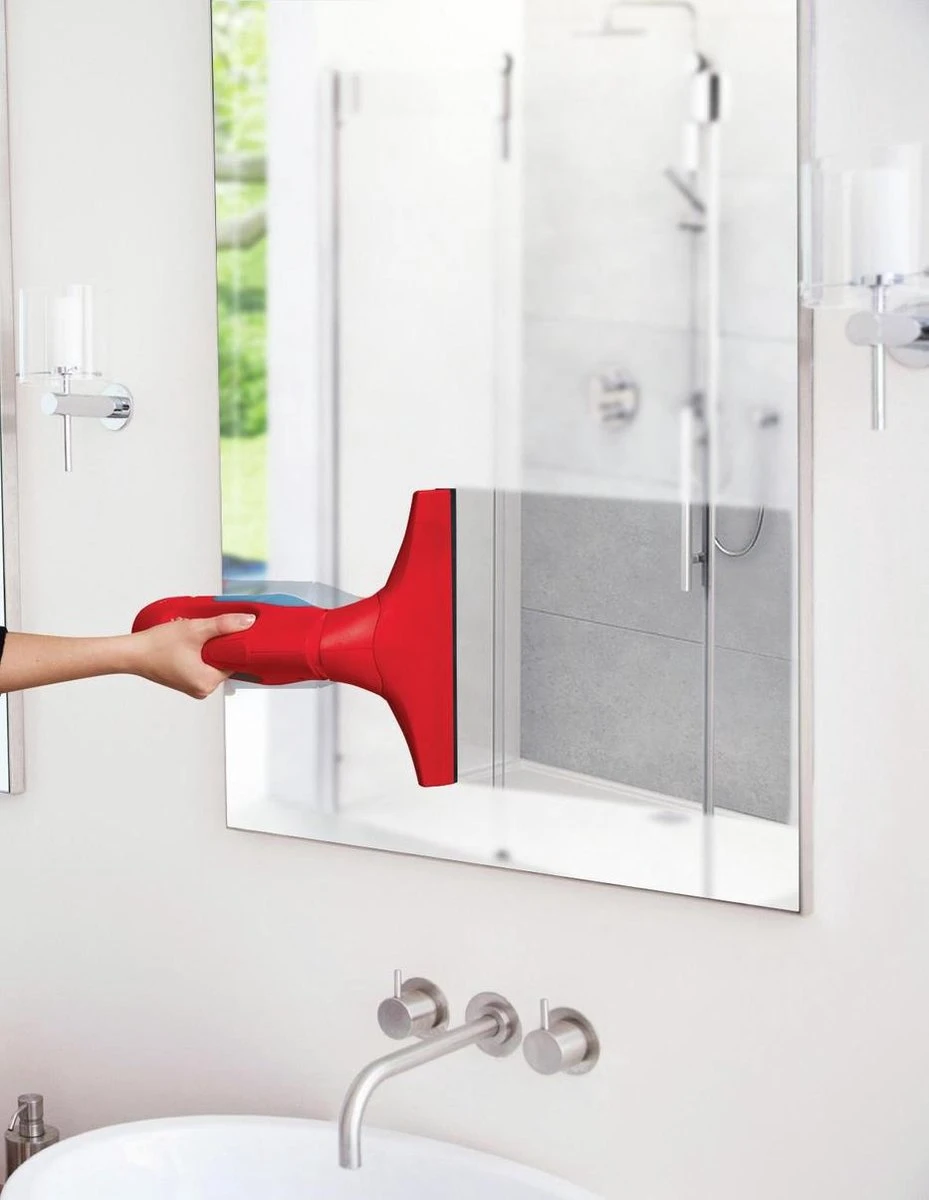 | Aanvullende functies | Ook op andere gladde oppervlakken zoals douchecabines, spiegels, badkamertegels of autoruiten, kan de Windomatic worden gebruikt. Horizontale oppervlakken zoals tafels of werkbladen kunnen gemakkelijk schoongemaakt worden als er op geknoeid is. |