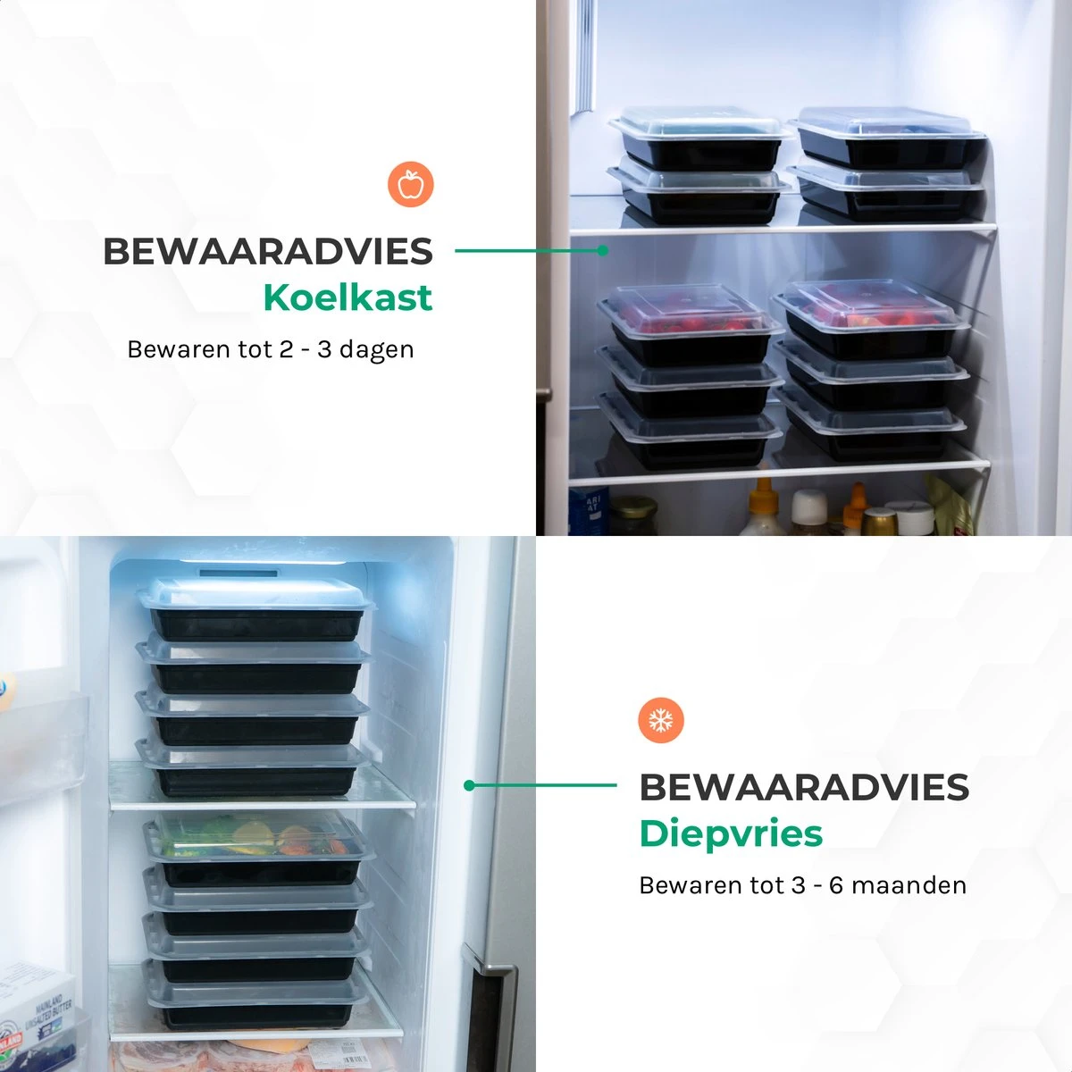 Vries je meal prep voor langere tijd in en warm maaltijden op in de magnetron. Onze meal prep bakjes geven je de vrijheid om flexibel te zijn met je meal preps.