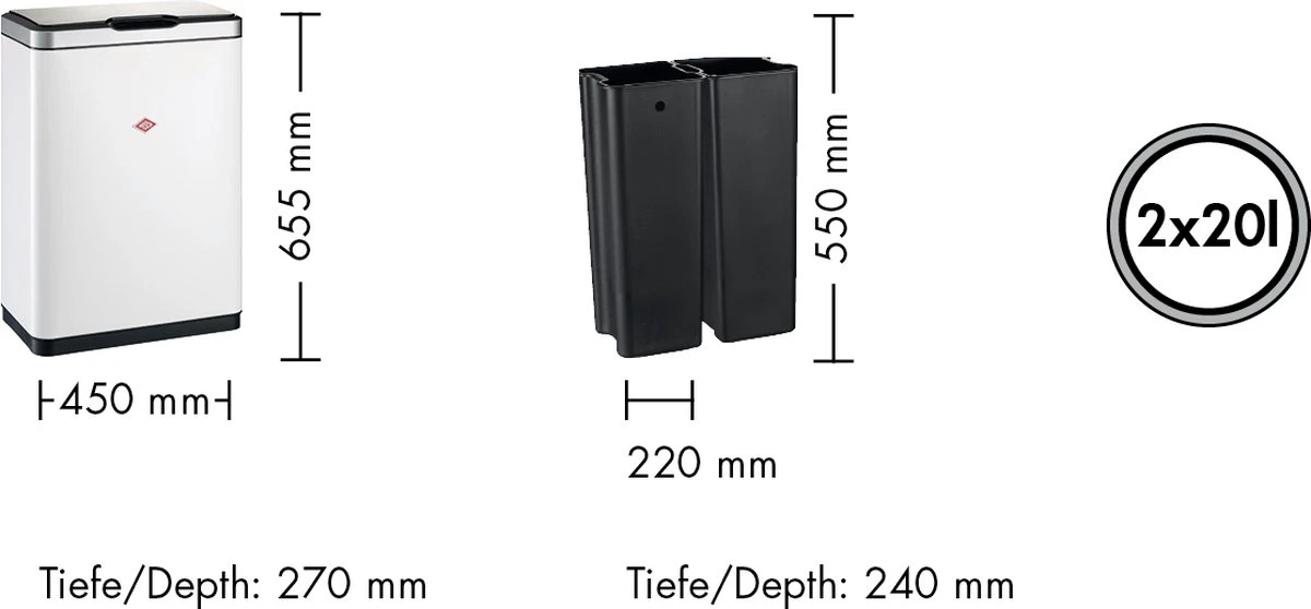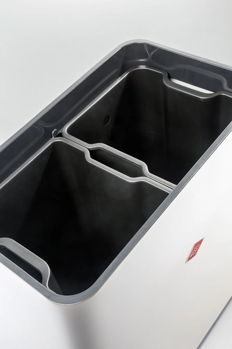 Dankzij de contactloze opening is de Talkmaster bijzonder hygiënisch. Met een totale inhoud van 40 liter biedt hij voldoende ruimte voor grotere hoeveelheden afval. Twee afzonderlijke plastic inzetbakken van 20 liter zorgen voor een goede scheiding van papier, glas, plastic of restafval. Dankzij zijn rechthoekige vorm kan de i.Master gemakkelijk in nissen of hoeken worden geplaatst.